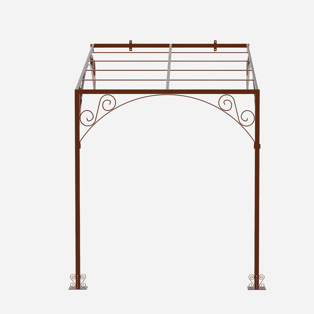La pergola adossée allie robustesse et élégance. Sa structure en fer forgé, couleur rouille, est traitée anti-corrosion pour résister au temps et aux éléments. Complétée par une visserie en acier inoxydable, elle garantit une durabilité sans compromis. Avec sa toiture légèrement inclinée, elle assure à la fois esthétisme et praticité. Une solution fiable pour sublimer votre espace extérieur.