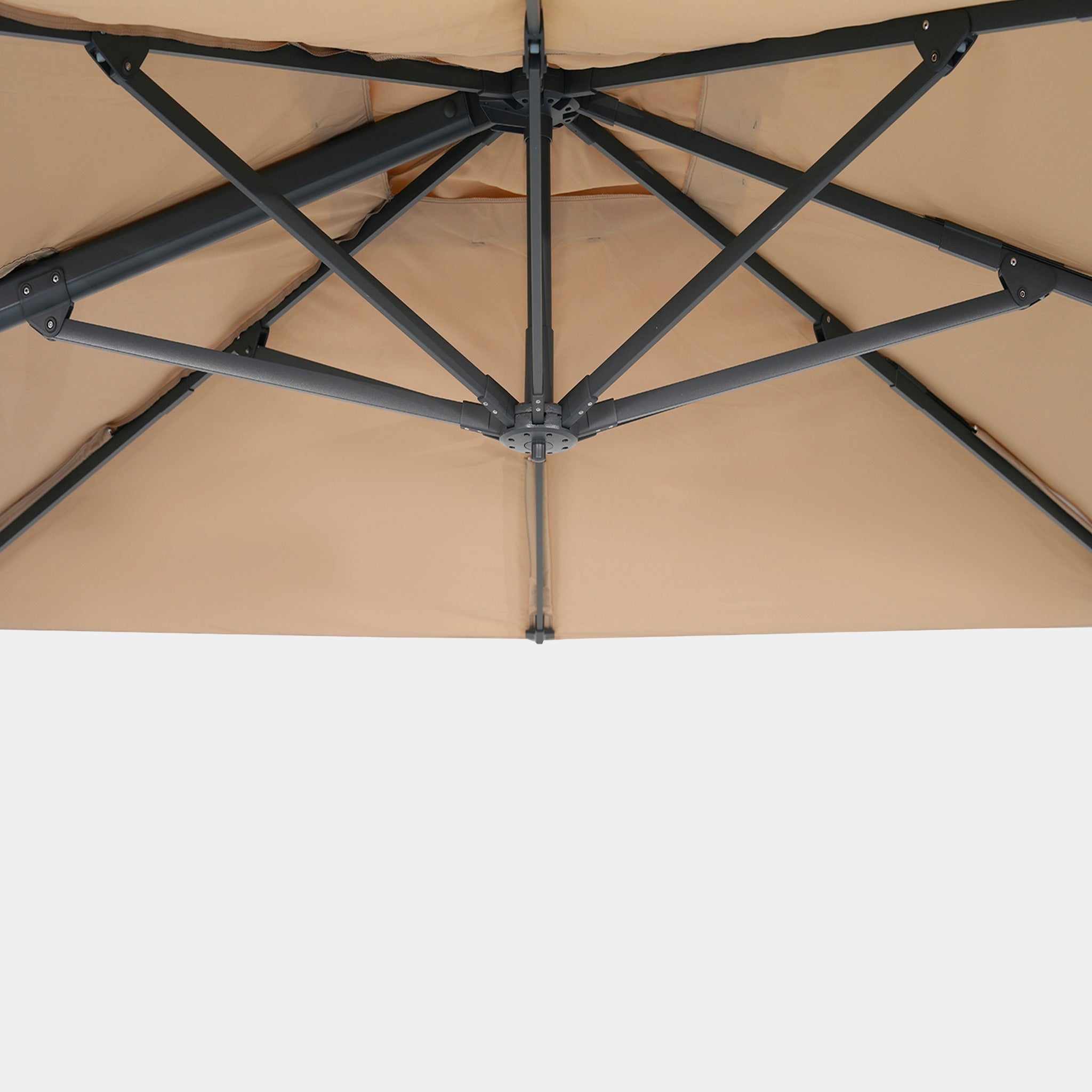 Concernant la housse, nettoyez les taches dès leur apparition pour éviter qu’elles ne s’incrustent. Pour un entretien délicat, privilégiez le lavage à la main : plongez la toile dans de l’eau tiède mélangée à 150ml de savon doux par litre, frottez doucement à l’aide d’une éponge ou d’une brosse souple, puis rincez abondamment et laissez sécher à l’air libre. Pour les taches plus tenaces (hors toiles polyester), une solution d’eau de javel diluée peut être utilisée : mélangez 1 litre d’eau, 150ml de savon doux et 5cl d’eau de javel dans un spray, appliquez sur l’ensemble de la toile, laissez agir 10 minutes, nettoyez à l’éponge et rincez soigneusement. Si vous préférez, optez pour un lavage en machine : déhoussez la toile, fermez les fermetures éclair, et lavez à 30°C en cycle délicat avec votre dose habituelle de lessive. En cas de moisissure, ajoutez 5cl d’eau de javel (hors polyester) et lancez la machine immédiatement pour bien diluer le produit. Une fois propre, laissez toujours sécher votre toile à l’air libre. Enfin, veillez à ne jamais ranger ou fermer votre parasol lorsque la toile est encore humide pour éviter les moisissures, et éloignez-la des surfaces réfléchissantes ou des éléments chauffants qui pourraient l’endommager. Avec ces gestes simples, votre toile restera propre et en parfait état, saison après saison.
