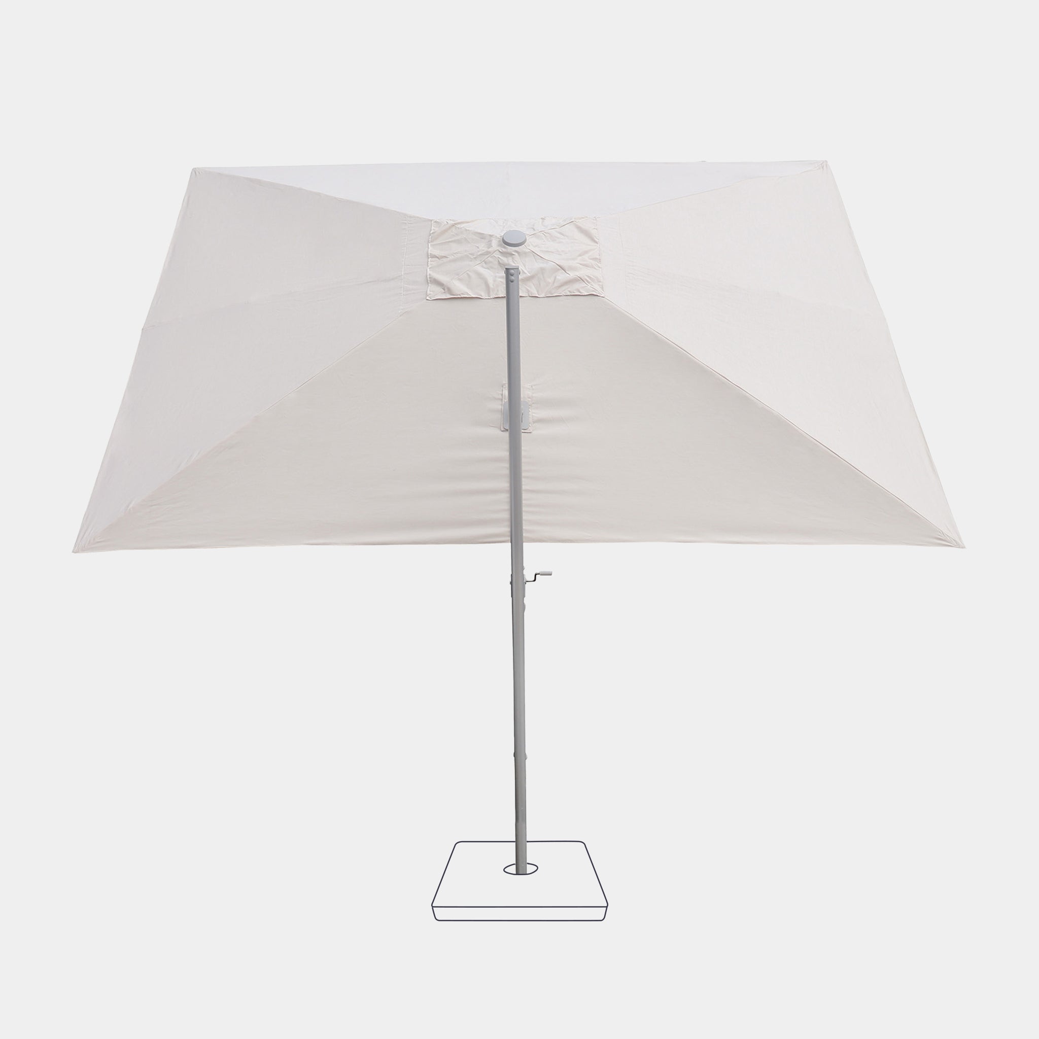 Le parasol peut également être complété d'un pied à roulettes Kona (non inclus), en vente sur notre site internet.