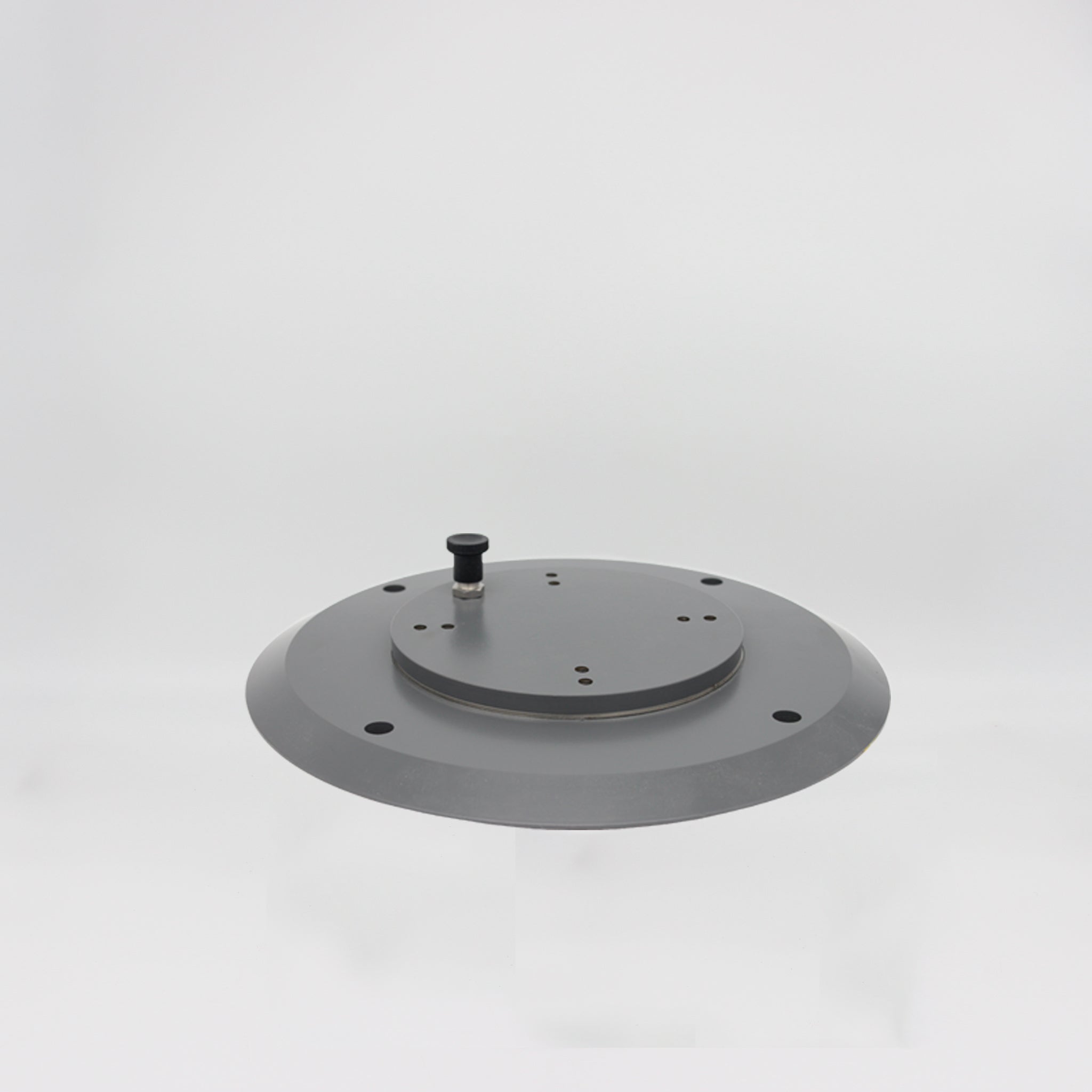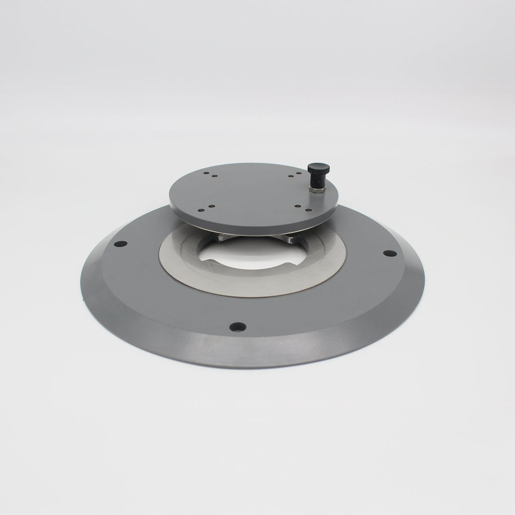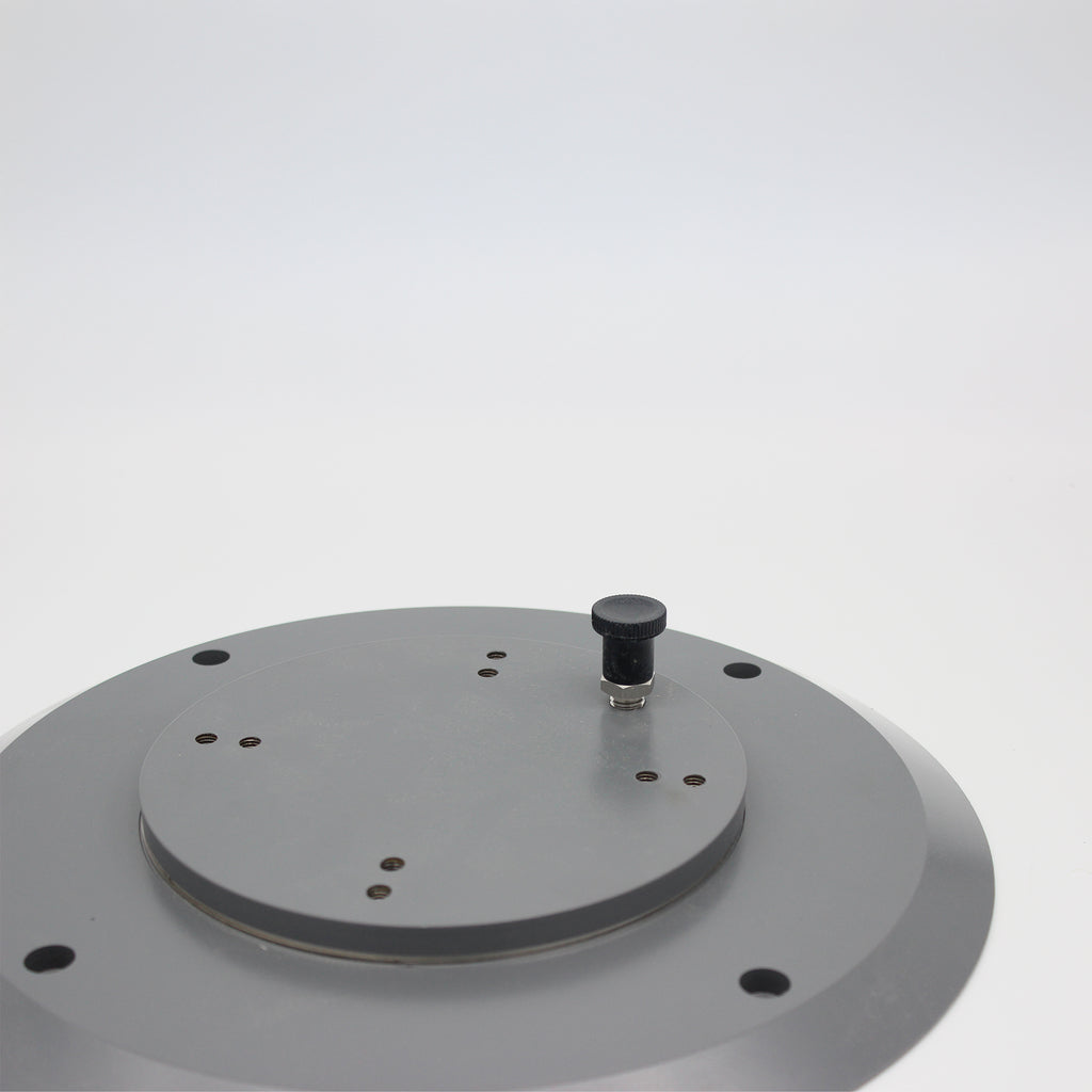La base a un diamètre de 35cm et d'une hauteur de 2cm (entretoises de 5mm comprises). 4 trous sont prévus dans la base pour venir la fixer au sol (les 4 trous et alésages réalisés dans la base sont prévus pour des vis BTR Ø8mm DIN912, nous fournies). Elle est isolée du sol par 4 entretoises en acier inoxydable, permettant de nettoyer plus facilement votre pied et d'éviter la rouille.