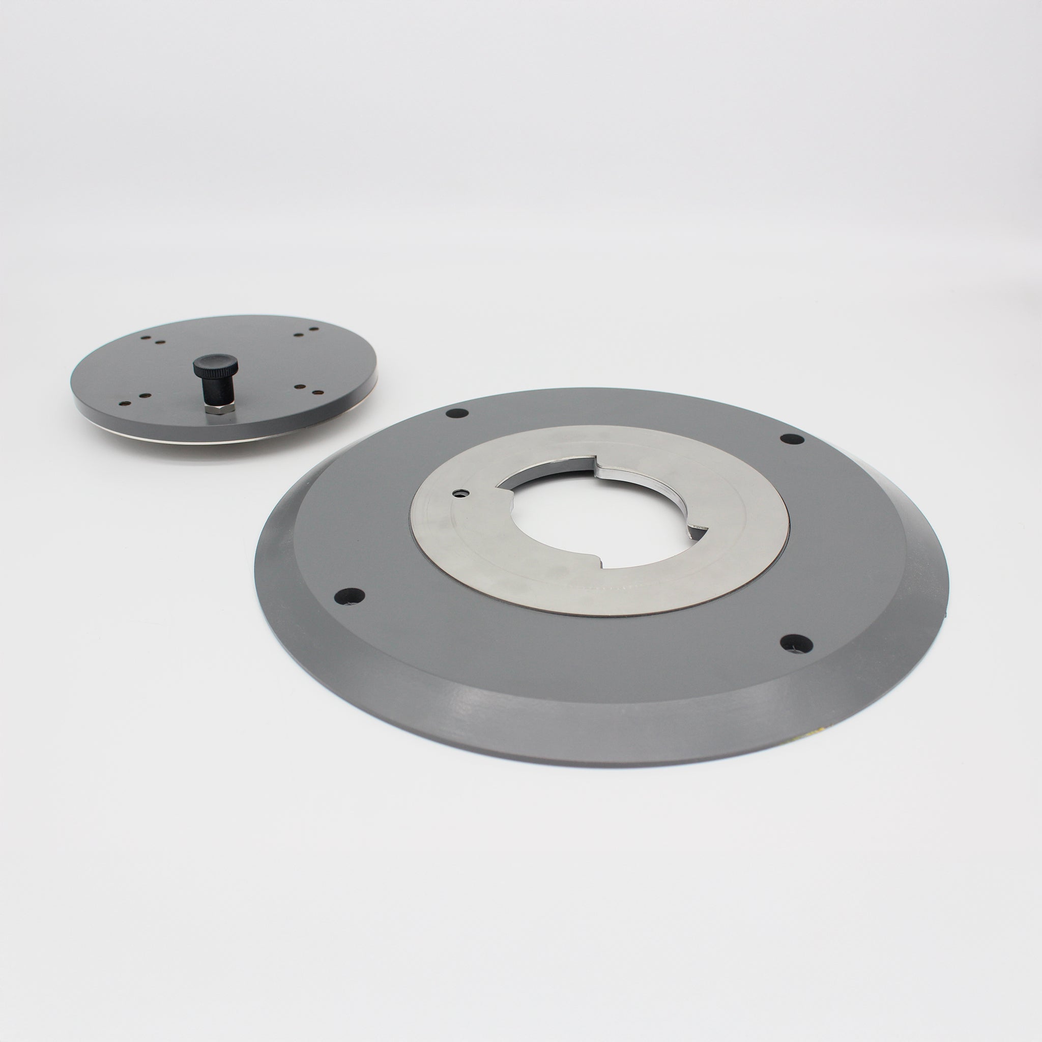 Le disque amovible a un diamètre de 19cm et une hauteur de 1cm + pion de verrouillage. Il comporte 4 trous de fixation pour parasol droit (entraxe des trous : 13cm) et 4 trous de fixation pour parasol déporté (entraxe des trous : 16cm).